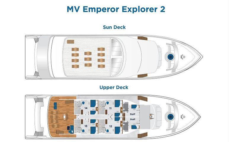 Die Emperor Explorer II ist das neueste Flaggschiff der Emperor Flotte auf den Malediven. Seit Anfang 2026 kreuzt das komfortable Schiff auf 7- und 14 - Nächte Touren zu den besten Tauchspots der Malediven. Das mit 44 Metern sehr geräumige Schiff bietet in 13 Kabinen 26 Tauchern bequem Platz. Täglich werden bis zu vier Tauchgänge angeboten.